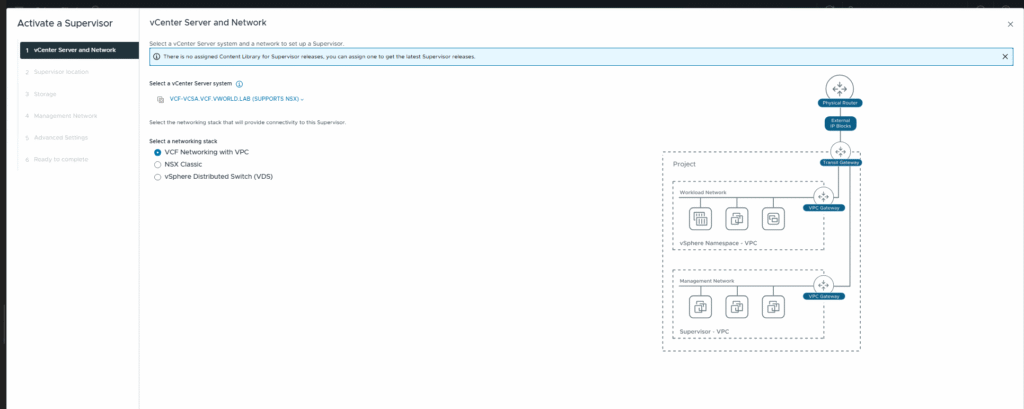 With the environment prepared, I can now proceed with the Supervisor activation wizard in the vSphere Client.