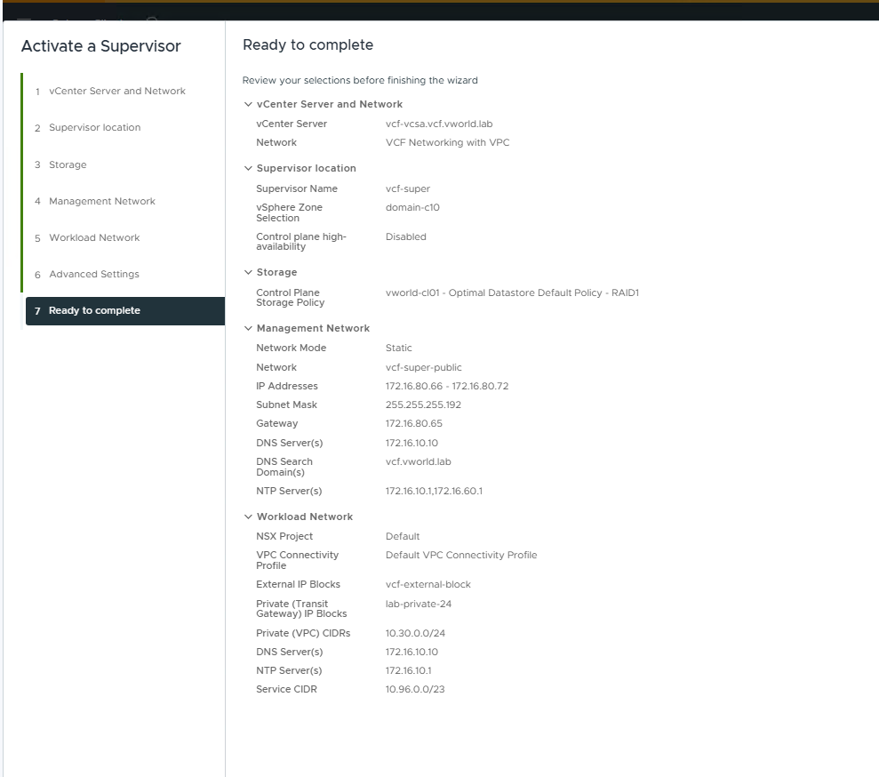 4 thoughts on “Activating the Supervisor in VMware Cloud Foundation 9 with NSX VPC – A Step-by-Step Guide”
