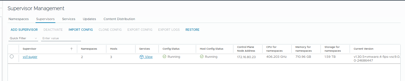 Welcome back to my series on building a lab based on VMware Cloud Foundation 9.0! In the previous articles, I went through the VCF 9.0 installation process, the configuration of the pfSense router, and the deployment of the NSX Edge cluster. Now that I have a solid foundation, it’s time for one of the most crucial steps: activating the Supervisor.