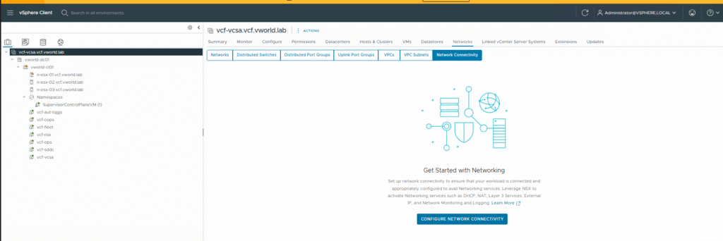 1. In vCenter, navigate to Networking ▶ Network Connectivity ▶ Configure Network Connectivity — the start screen.