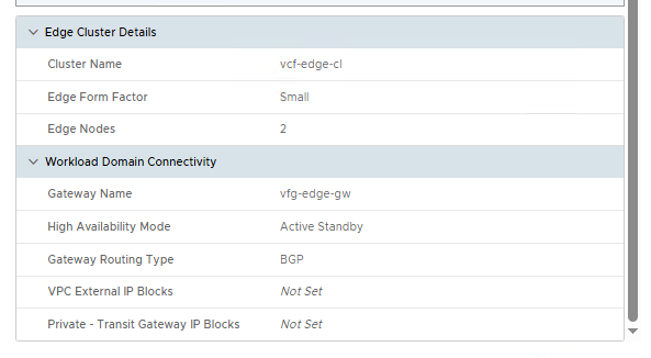 The final step before enabling VCF Automation is to deploy an NSX Edge cluster and a Tier-0 gateway in Active-Standby mode.