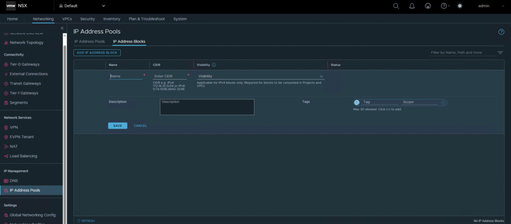 1. Networking ▶ IP Address Pools ▶ IP Address Blocks — create at least: