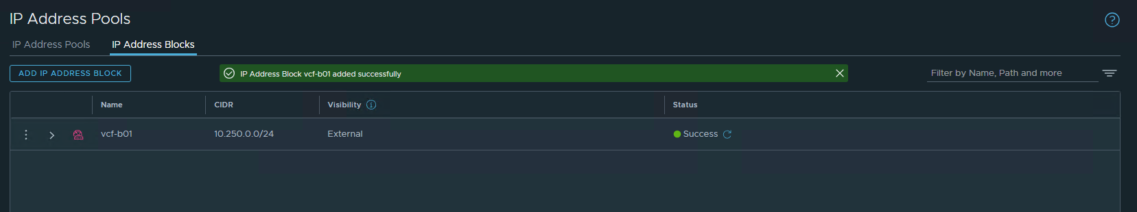 These blocks are mandatory for VCF Automation to allocate NAT addresses and VPC subnets.